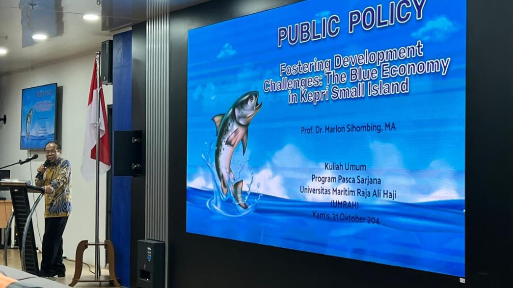 TANJUNGPINANG — Program Pascasarjana Universitas Maritim Raja Ali Haji (UMRAH) selenggarakan Kuliah Umum bertema “Fostering Development Challenges: The Blue Economy in KEPRI Small Island”. Acara tersebut menghadirkan narasumber ahli di bidangnya, Prof. Dr. Marlon Sihombing, M.A., yang memberikan wawasan mendalam terkait tantangan pengembangan kebijakan publik pada sektor maritim. Kamis (31/10/2024).